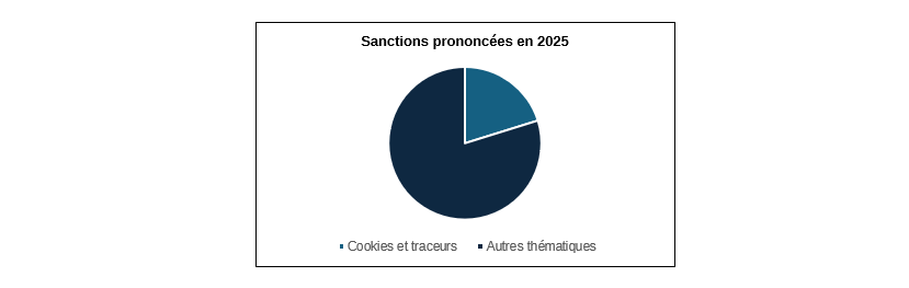 Plus de 25 % des sanctions concernaient des manquements aux règles régissant les cookies et autres traceurs : dépôt sans le consentement de l’utilisateur, insuffisance des informations fournies (ne permettant pas de recueillir un consentement éclairé), ou encore absence de prise en compte effective du refus de l’utilisateur ou du retrait de son consentement.